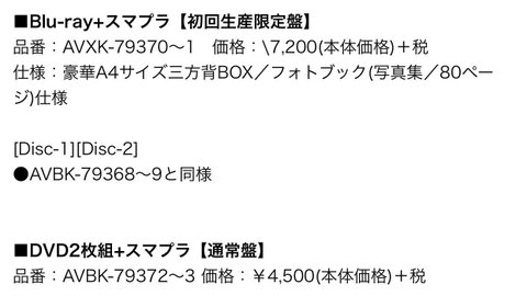 수록영상 리스트. 초회한정반은 마지막 보너스 무비(백스테이지 영상)+포토북(80P)가 포함. 통상반은 보너스 영상과 포토북이 포함되지 않으니 확인하고 주문하세요//