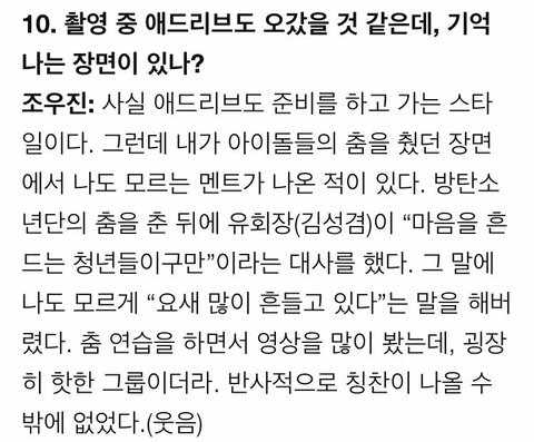 비서분이 요즘 많이 흔들고 있습니다는 애드립이였고 방탄 칭찬해주셨다ㅜㅜㅠㅠ