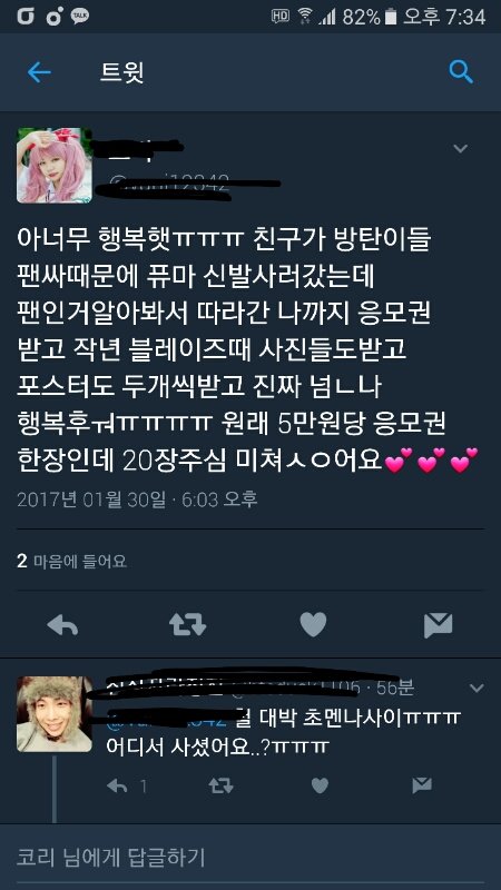 짹에서 본건데 문정점 푸1마에서 팬사인회 20장을 그냥 공짜로 줬다는뎈ㅋㅋㅋㅋ이거 사실이면 내일 당장 전화해서 항의해야하는거 아님?? 5만원짜리를 몇개나 사서 응모 하는 팬들도 있는데 이게 무슨 날벼락인지.