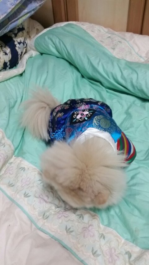 설빔을 입더니 우리 미미는 온 동네를 돌아다니면서 자랑하고 다니더라..