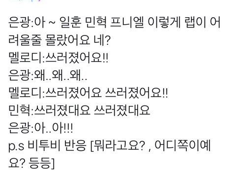 응가 랩무대소감얘기하다가 중간에 사색되서