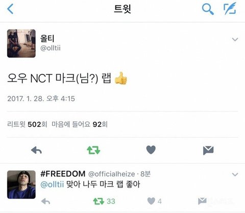 언더래퍼(올티)가 nct마크 랩 언급함!