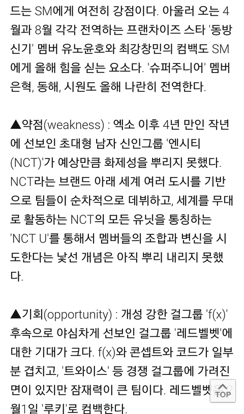 3대기획사 약점 강점 뭐 그런거 정리한글인데..