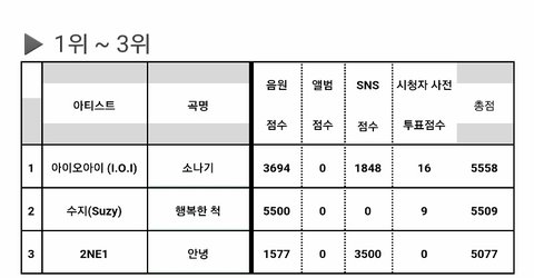 결방했던 인기.가요 1월 마지막주 1위 소나기!!