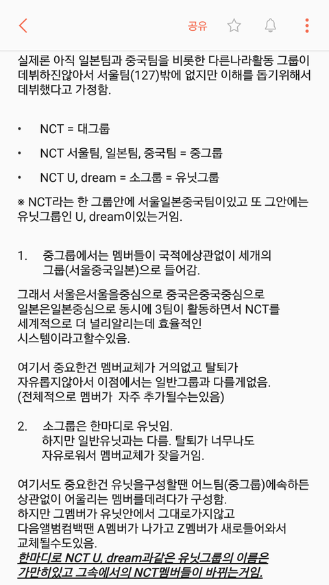 본진따로있는 타팬인데 요즘 엔씨티분들이 호감가서 체계에대해서 공부? 해봤는데 만약 모르는분들있으면 조금이나마 도움이될까해서올려ㅎ 잘못된부분있거나 내가너무 오버하는거면 말해쥬ㅓ.. 톡톡가려다 팬톡가라고 욕먹을까봐 여기다가올릴게ㅋㅋㅋㅋ