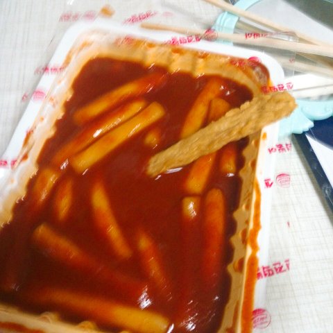 지금 혼자 신1전 떡볶이랑 오1뎅튀김까지 먹고있