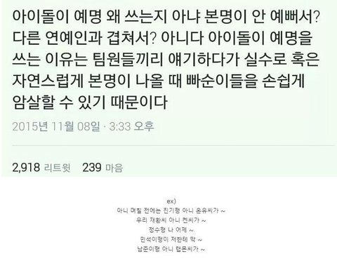 아이돌이예명쓰는이유