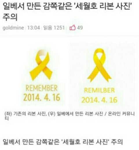얘들아 세월호 리본 사진 조심해 알고있는애들도 있겠지만 모르는애들도 있는거같아서 !