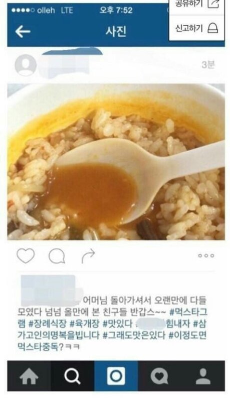저번에 육개장 글 올라온거 부터 시작된 의문점이 여기까지... 장례식장에서 이런행동해도 된다 안된다... 판녀들 의견이 넘나 궁금함... 얼굴 사진찍은거 보면 또 짠하기도 하고... 내가 이상한건지.. 하여튼 사진 보고 댓글로 의견들좀 남겨줘!!