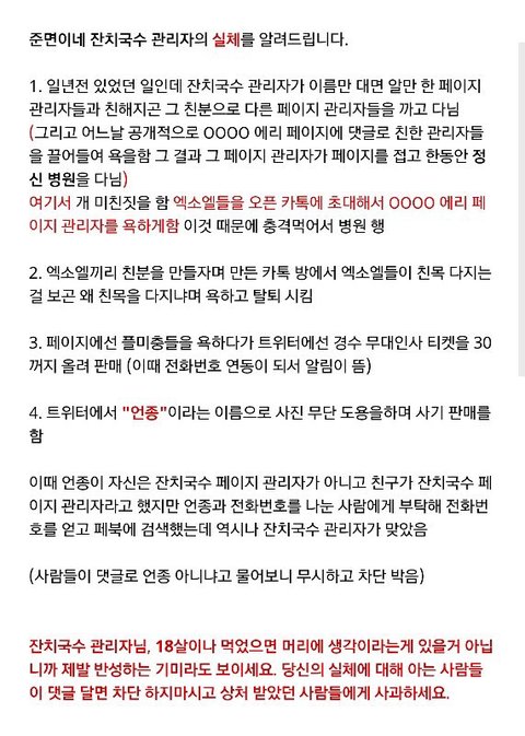 얼굴책에 준면이네 잔1치국수 페이지임 댓글에 이걸로 도배해 이중인격 오짐