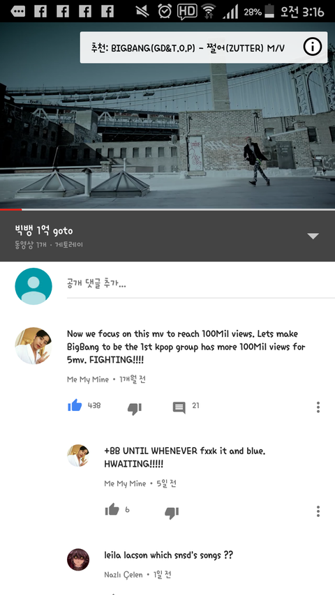 빅뱅 blue 한번씩만 들어줘~