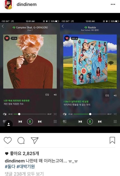 ㅋㅋㅋㅋㅋㅋ딘딘 귀엽다 1분차이로 지디노래를 더 빨리 들었네ㅋㅋㅋㅋ