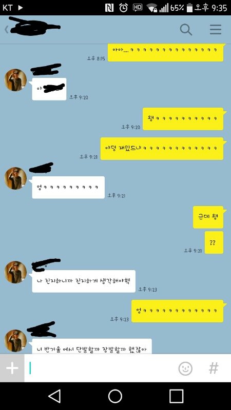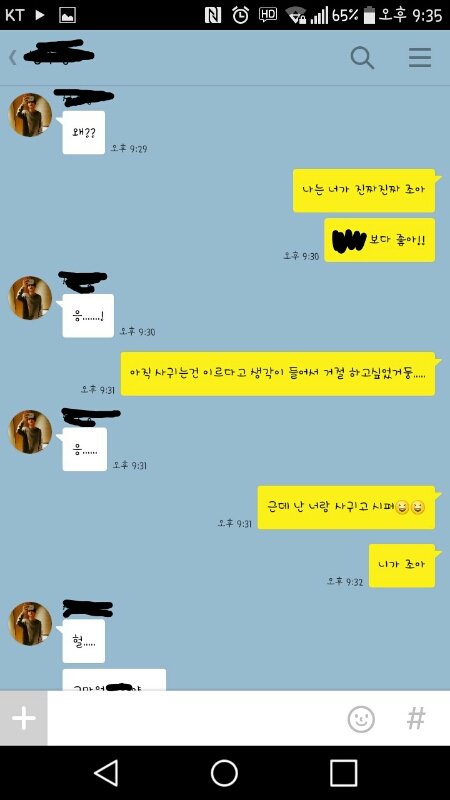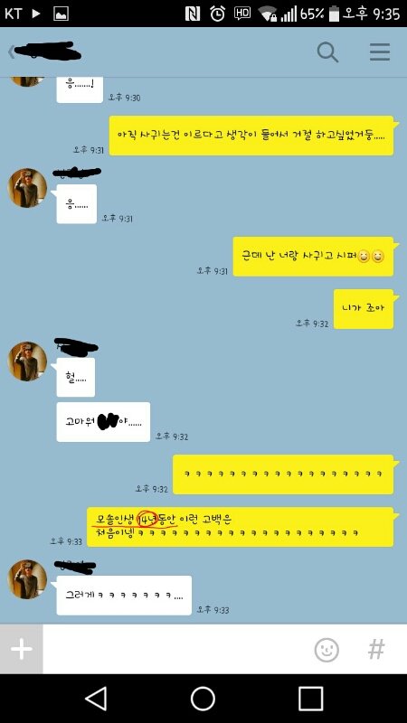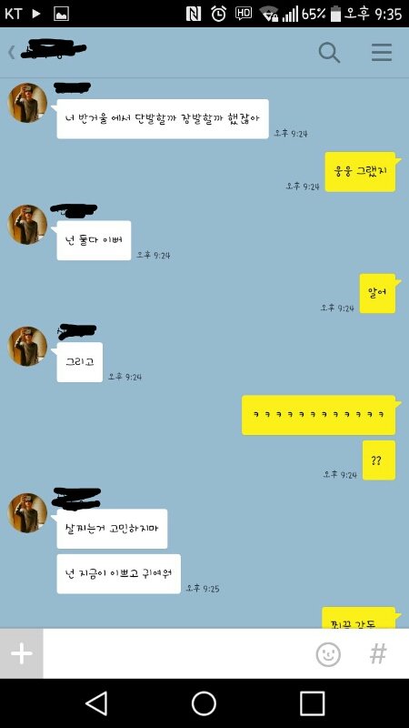 오늘 점심시간에 컾애들이 나 모솔이라고 왕따시켜서 여친없는 남사친이랑 반에서 힘자랑 하면서 놀고있었음. 근데 갑자기 입이 아파서 혹시나 입술튼지 알고 거울로 감. 전혀 안틈ㅋㅋㅋㅋㅋㅋㅋ여튼 갑자기 거울을 보니까 단발이하고싶고 살이 빼고싶어짐..ㅋ 그래서 거울보면서 남사친한테 " 나 단발 해볼까? 이쁠듯ㅋㅋㅋ " 이럼. 근데 남사친이 조카 띠껍게 " 어 조카 못생길듯 " 이럼. 짜증나서 " 됬어 돼지 새끼얌 " 이러고 조금 있다가 우리반 애들이 들여놓은(?) 전신거울앞에 가서 " 아..나 살빼야하는뎁 " 이랬는데 그 남사친이 " 살안빼도 이뻐 " 이러고 감..ㅋㅋㅋㅋㅋㅋㅋ이때 부터 걔를 의식하고 힘자랑못하고 수업맞침. 그러고 집갔는데 7시 반? 정도 됬길래 컴터를 키고 겜을 했음. 그러고 한시간정도 지나서 그 남사친한테 톡이왔음. " 나 야동볼껀데 좋은데 추천점 " 이럼ㅋㅋㅋㅋㅋ 그래서 좋은곳 알려주고(?) 즐감한다길래 아아.. 이러고 끝남ㅋㅋㅋㅋㅋㅋ겜하고 있었음. 근데 또 걔한테 톡이옴. 자기 진지하다고 막하다가 걔가 조오오오오온나 설레는말 해줌ㅜㅜ 나머지는 사진 참고♥