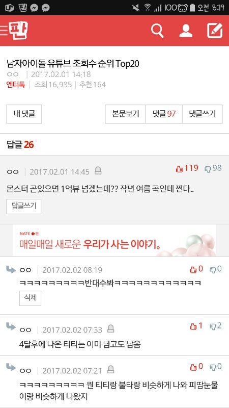 엔터 엑소댓글 반대수 지린다 귀찮아도 가서 추천눌러