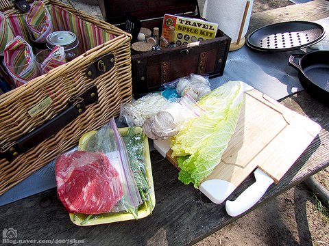 아침 먹고 출발하면 점심 먹을 무렵 도착해서, 집에서 만들어 온 김밥이나 샌드위치 등으로 식사를 하고, 텐트 펴고 짐 좀 정리하면 어느 새 저녁 식사 시간이 코 앞으로 다가오니까요.