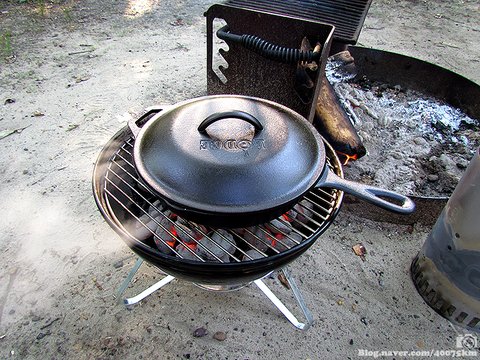 롯지 무쇠팬은 터프한 맛에 사용하는 요리도구라서 그냥 캠프 파이어 위에 올려두고 끓여도 되긴 하지만