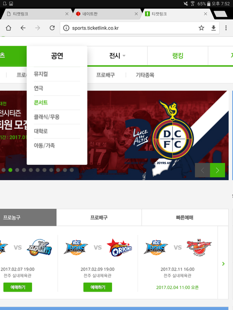 스포츠 예매하기 눌러 여기 들어가봐 뚫렸어 나는 ㅠㅠ