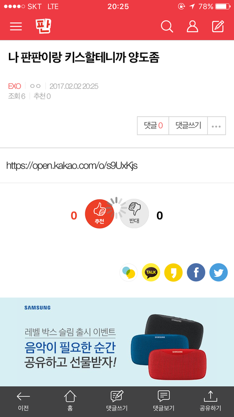 카카오스토리 보내기
