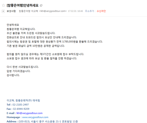 #참좋은여행사 생각없는 여행사 책임감없는 여행사
