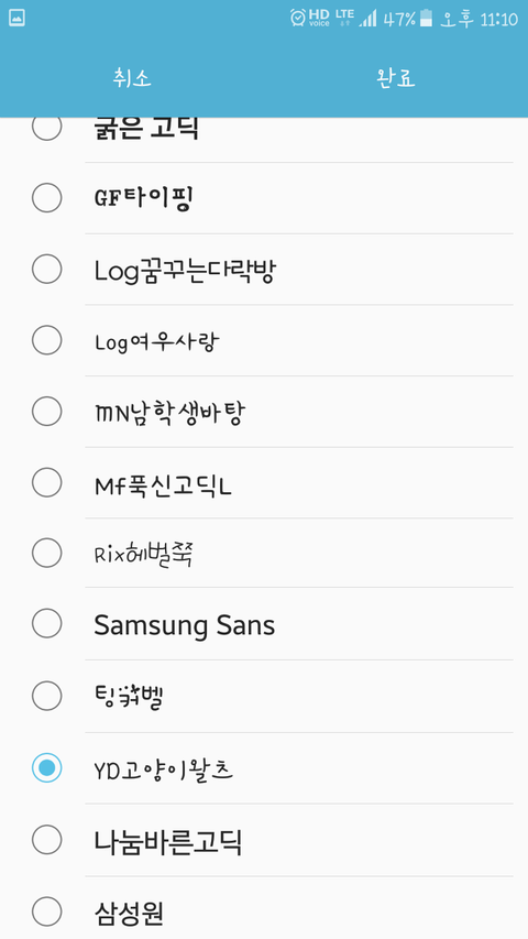 갤럭시에 되는 폰트 찾았썽