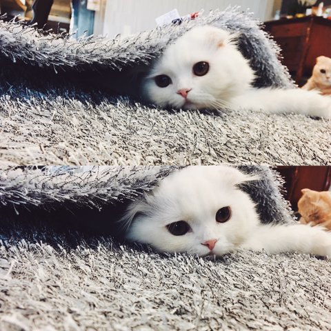 마지막은! 카페트를 살짝 말았더니 그 사이로 쏙 들어간 하몽이가 넘나 귀여운것❤❤❤❤❤
