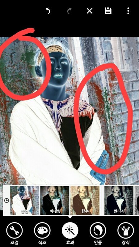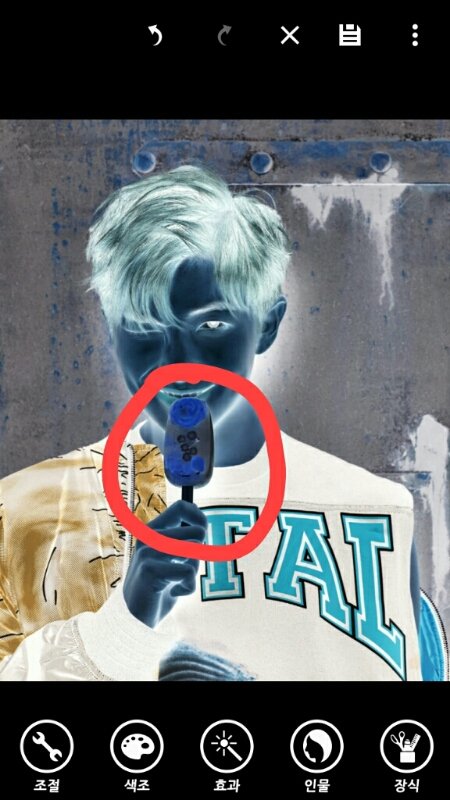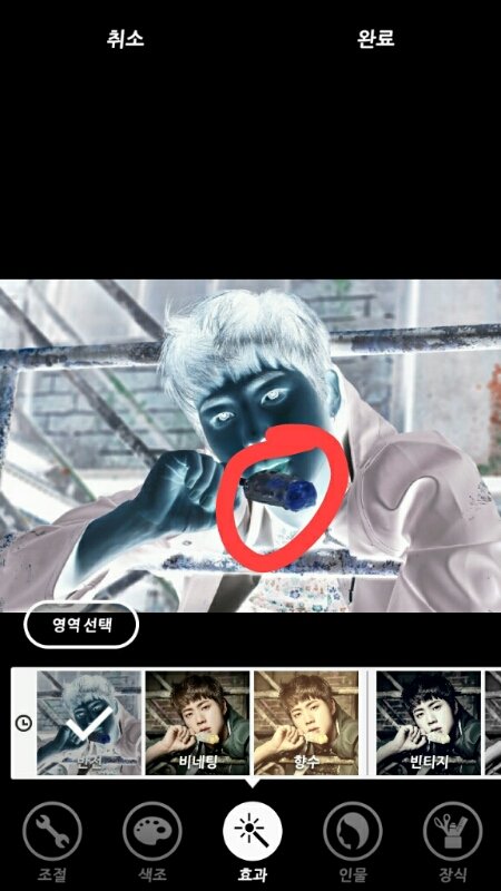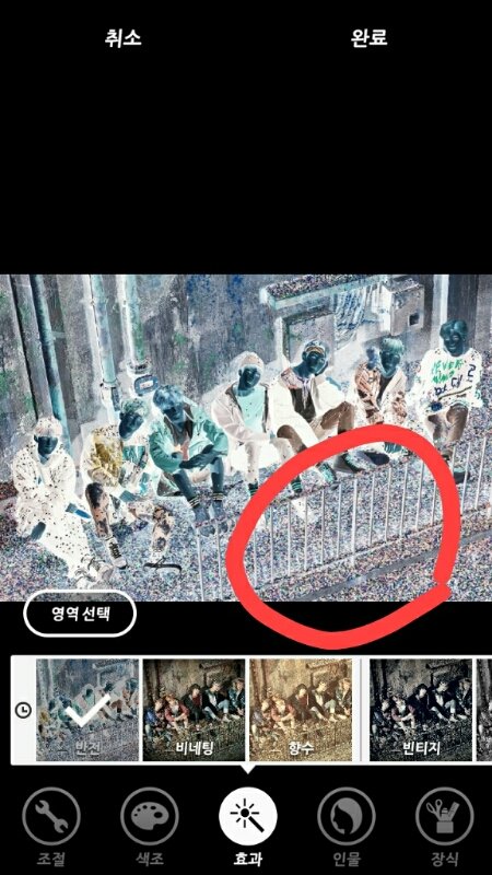 그리고 단체사진을 색반전해보면 아래 떨어진 종이조각색깔이