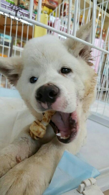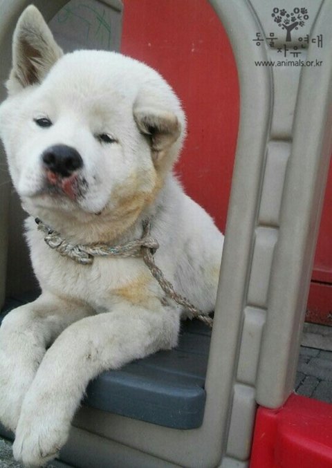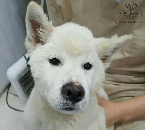 지속적인 학대로 머리속에 피가 고인채 구조된 백구 뿌꾸 입니다.