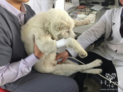 동물보호법에 따라 뿌꾸를 학대현장에서 격리후 병원으로 이동해 검진을 받았습니다.