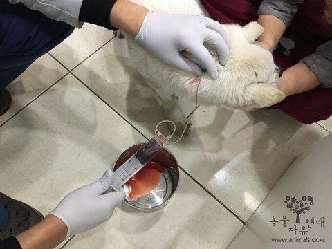 바늘을 꼽고 피를 뽑아내는 과정에서도 뿌꾸는 신음소리 한번 내지 않았습니다.