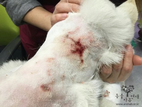 털을 밀고보니 여기저기 보이는 학대의 증거들.