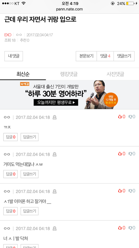 씨1발 바퀴벌레 알낳는거 상상했는데 갑자기