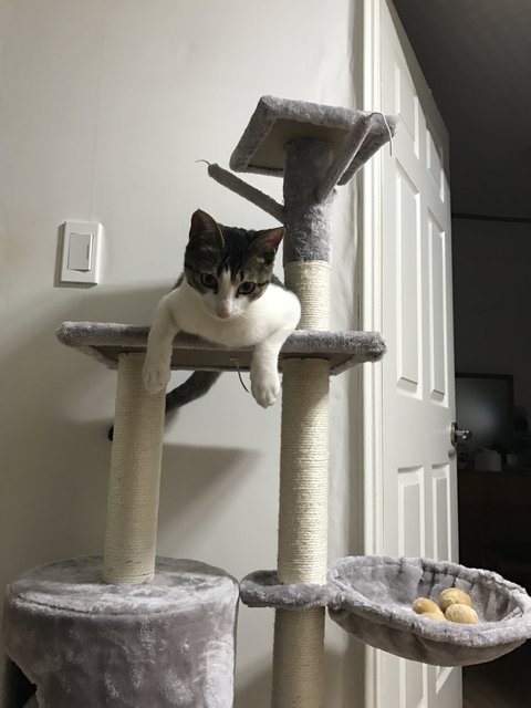 사진에 방울 보이시나요??캣타워 사온 첫날 다물어뜯어놓네요...ㅋㅋㅋ낚시장난감도 다 물어뜯고 ㅋㅋ좋은걸 사줄필요가 ㅋㅋ