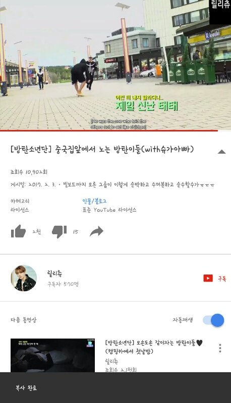 (사진에 뜨는 복사는 영상링크복사한거야.!!)