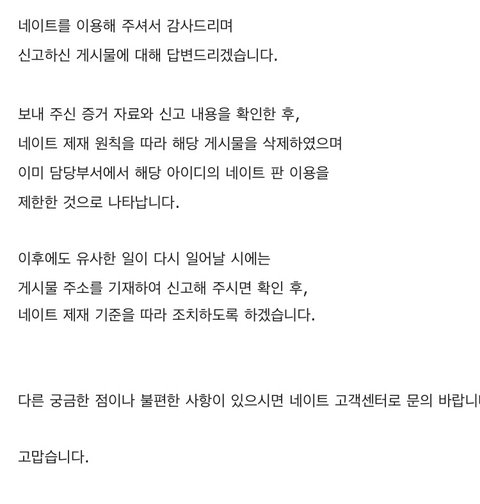 계속 신고했거든 근데 이렇게 답장은왔다?