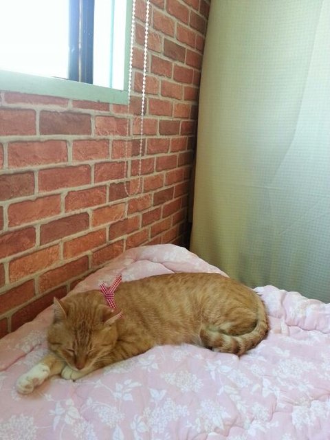 입양 전 구조한 녀석을 만나기위해 그 분 집에 방문하니 영역싸움에 밀려 다친 다리를 치료받으며 베란다한켠에 쉬고있는 제리가 있었어요