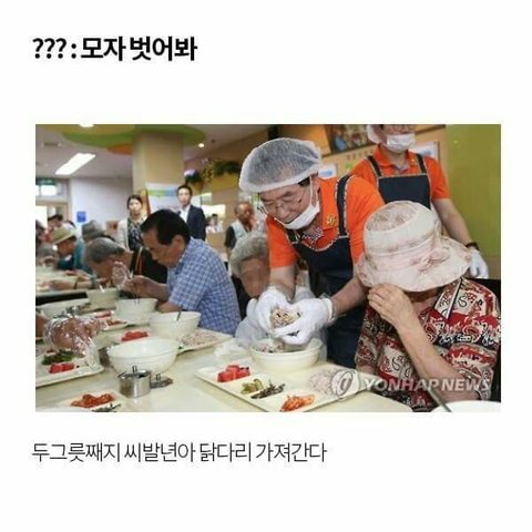 적당히 해야지.. 그리고 장애인 도우는 사진, 위처럼 노인분들께 봉사하는 사진에도 드립치는거 너무해..