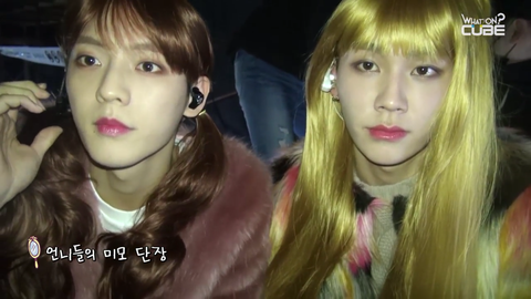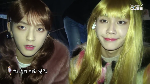 비트콤이번 콘서트 비하인드 영상보다가 정일훈 여장한게 세상 너무 예뻐서 캡쳐했음... 여장 레전드는 임녁 걸스데이따라했을때가 갑이라 생각했는데 정일훈 검정분홍이 최고 인거같아...그냥 너무 예뻐서 (의식의 흐름) 이렇게 써도 되나?
