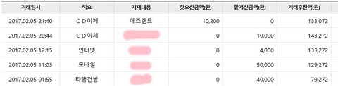 2월 5일 찬이 생일 조공 입금 현황입니다