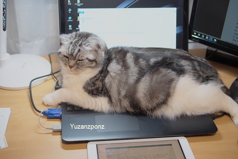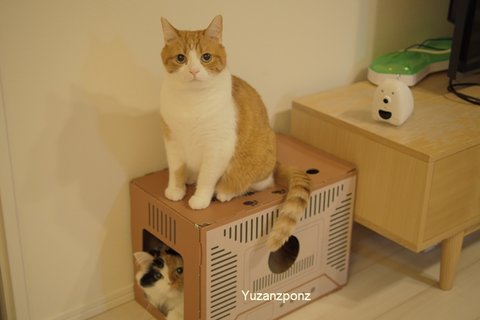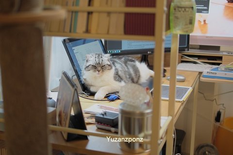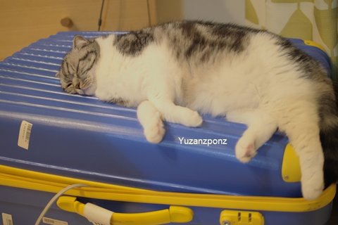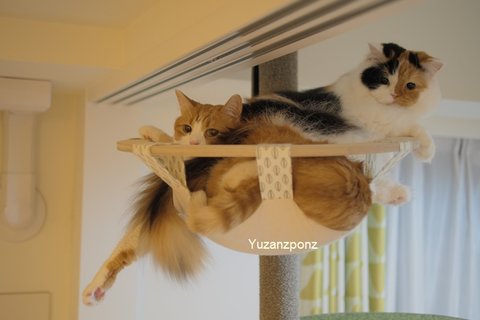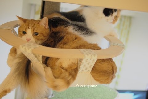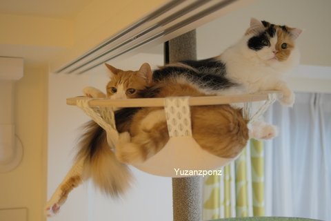 유봉이가 먼저 해먹에서 쉬고 있었는데.. 퐁즈가 올라오더니 그대로 깔고 앉아 버렸습니다.