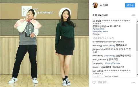 얼마전에 권혁수랑 함께 익스큐즈미 춤영상을 올렸던데