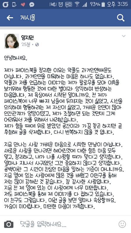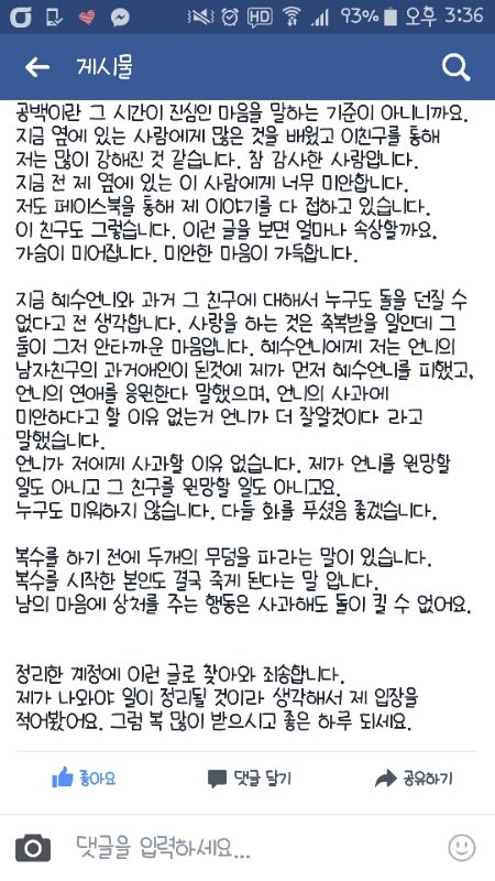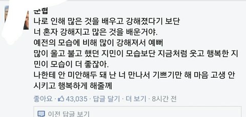 피한게 맞다고 한거 보니까 맘고생 많이 했을듯..하긴 1년 넘게 사귄남자랑 내 지인이랑 사귀면 나같아도 말로는 괜찮다해도 못볼듯..ㅜㅜ