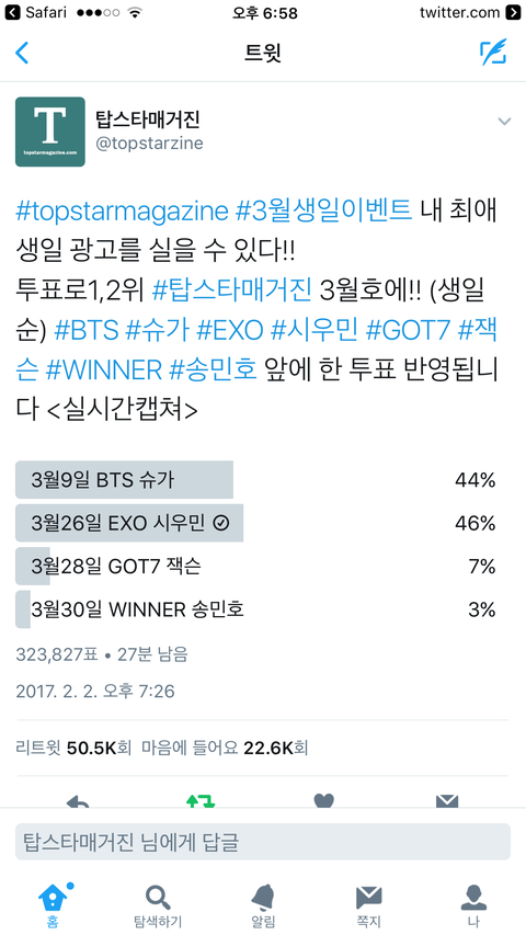자기전에는 민석이 투표 동률이라 젭알 자고일어나면 민석이 1위돼있게해주세요 흑흑 하고 자러갔는ㄷㅔ 일어나니까 진짜 현실이됨ㅋㅋㅋㅋㅋㅋㅋ큐ㅠㅠㅠㅠㅠ 아 ㅈㄴ 기쁘다 알계로 투표 개열심히했는데.. 역시 갓소엘 ㅇㅅㅇ