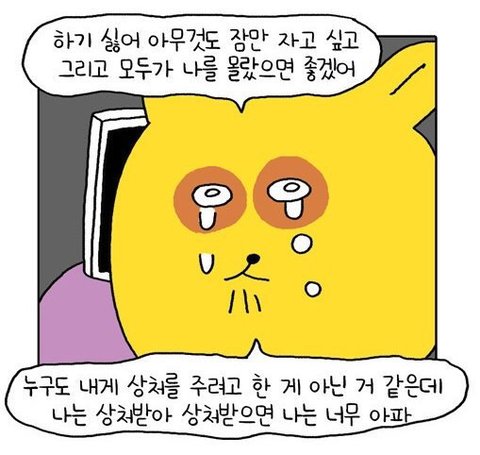 그 중국애들이 처음에는 쳐다보고 예쁘다고 했는데 이게 도가 좀 지나쳐서 당황스러웠어.. 모르는 남자애들이 지나가면서 기분 주옥같게;; 조롱하는 듯이 아이러브유!!하고 외치고, 본 적도 없는 남자애가 얼굴을 들이밀더라.. 여자애들은 바로 앞에선 잘대해주는 척하다 은근슬쩍 부려먹으려고하고 속상했어ㅠㅠ... 그러면서도 뭐라하지 못했던게 나도 모르게 너무 소심해져버린거야. 학교도 기숙학교여서 정말 살고싶지 않았어... 맨날 숨어서 울기만하고 내 자신이 점점 피폐해져간다는게 느껴지더라. 동아리시간엔 애들이 무시하고 수근거려도 ㅇㅐ써 아무렇지 않은 척 앉아있었는데 버티기 정말 힘들었어