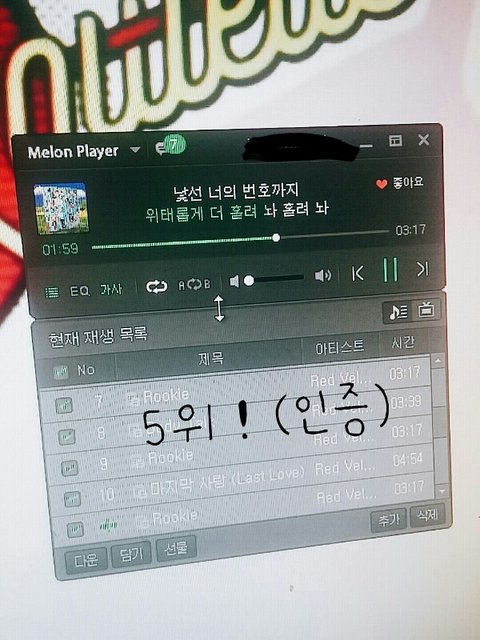 꺅 좋다 근데 내가 컴터로 24시간 스밍은 돌리는데 순위 확인을 그때그때 못했거든ㅠ 혹시 10시 11시에도 5위였어???