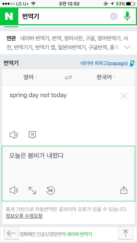 봄날 이랑 낫투데이 영어로합치면 오늘은 봄비가내렸다...광광ㅇ......