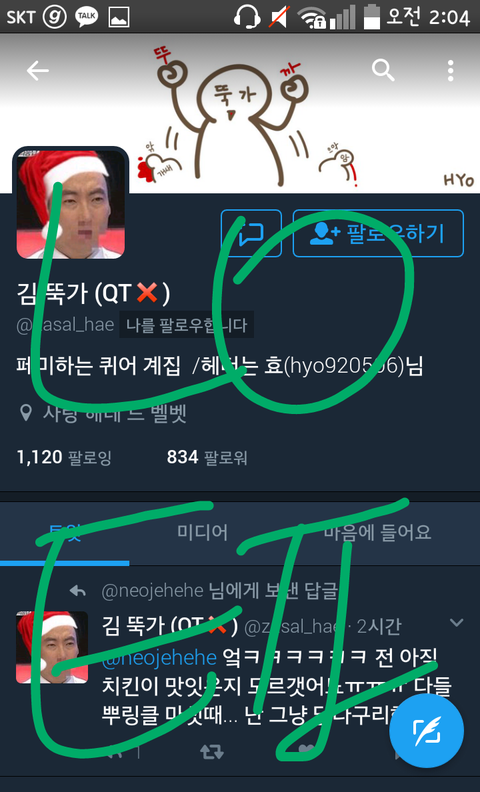 야 나 아까 뚝9292가가 나 팔로우하고 있다는 년인데