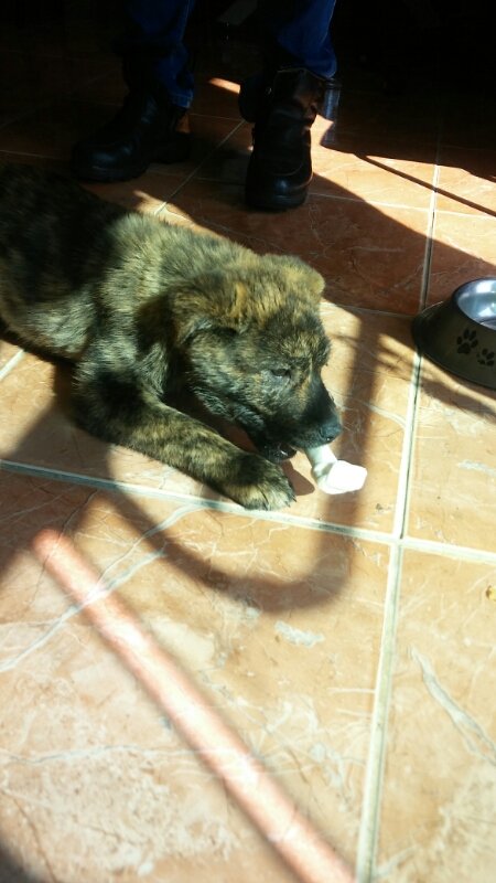 아파트 화단 짧은줄에 묶여 있던 아이를 발견했습니다.