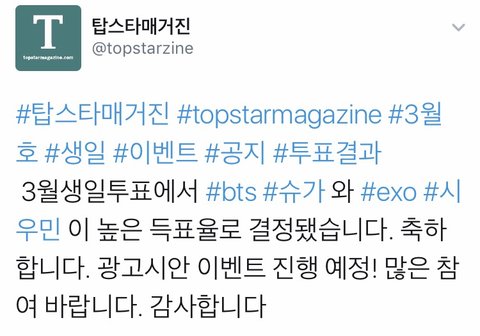 탑스타매거진 공지에 시우민