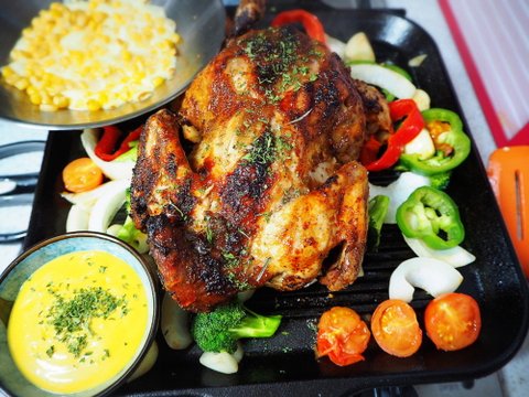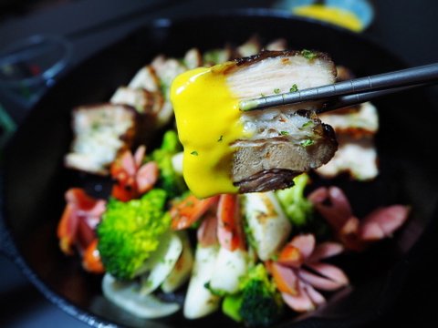 양념은 꿀마늘유지방(허니갈릭버터)을 발라주었구요. 냉장고 남은 식물들 썰어서 깔아줬습니다.