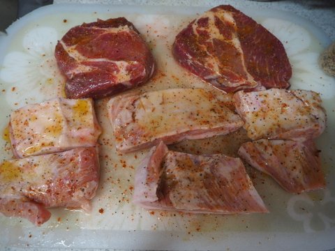 한덩이 살짝 해볼려다가....아무리 가스개조를 했다해도 바베큐는 야외에서...라는 교훈을 득함.